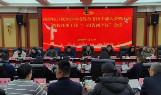 1月12日,拉萨经开区召开2025年度综合考核干部大会暨干部选拔任用工作“一报告两评议”会议。拉萨市副市长、经开区党工委书记白玛玉珍主持会议并讲话。拉萨市县(区)第三考核组组长、市藏语委办(市编译局)党组副书记、主任(局长)边巴卓玛,副组长、市水利局党组成员、副局长、二级调研员李君及考核组成员出席会议。党工委、管委会在家班子成员,各内设局室在编干部及各直属国企、街道、社区负责人参会。
